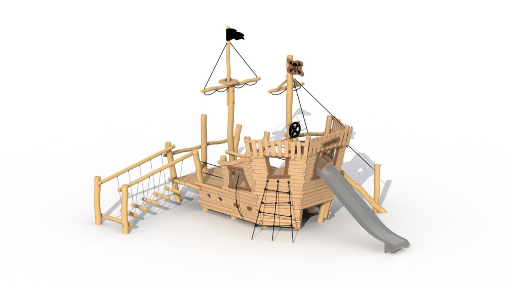 Piratskipet Albatros (akterende)med åpen rutsjebane balansetrinn, bjelkebro, klatretau og ratt