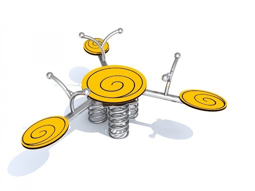 Vippe med 3 seter og 3 fjærer, med stilen som refererer til sneglens former og sterke farger. Konstruksjonen er laget av rustfritt stål, motstandsdyktig mot værforhold og intensiv bruk. Håndtakene ender med dekorativ rund kule som danner sneglehornet. Alle rustfrie Limako-produkter er tilgjengelige i galvanisert og pulverlakkert versjon.