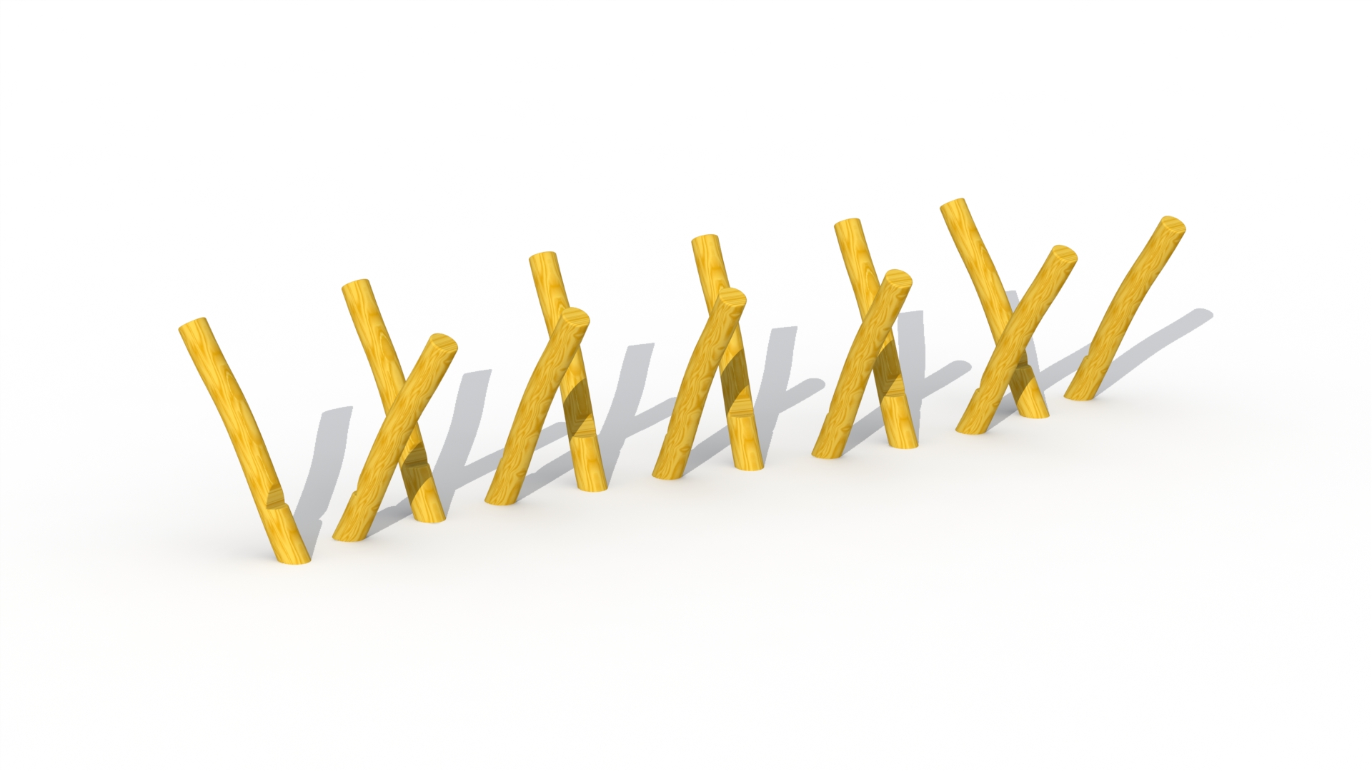 Lekeapparater produsert i Robinia kombinerer naturlig estetikk med høy funksjonalitet og slitestyrke. Robinia er et svært hardt og holdbart treslag som egner seg spesielt godt til utendørs lekeplasser, da det tåler vær, fukt og intensiv bruk over lang tid uten behov for kjemisk impregnering. Robinia har et organisk og naturpreget utseende som gjør at lekeapparatene passer godt inn i parker, skolegårder, barnehager og naturlekeplasser. Hver stolpe har sin egen form og struktur, noe som gir hvert apparat et unikt uttrykk. Robinia-konstruksjoner kan integrere ulike elementer som klatretau, nett, balansestokker, plattformer og rutsjebaner. Dette gir mange ulike lekemuligheter i ett og samme apparat og gjør lekeplassen mer variert og utfordrende.