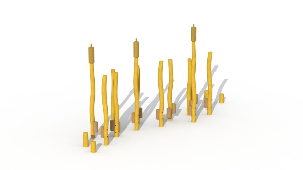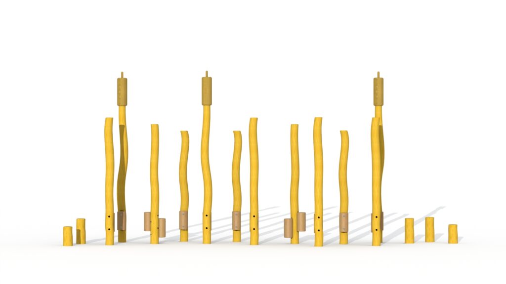 Lekeapparater produsert i Robinia kombinerer naturlig estetikk med høy funksjonalitet og slitestyrke. Robinia er et svært hardt og holdbart treslag som egner seg spesielt godt til utendørs lekeplasser, da det tåler vær, fukt og intensiv bruk over lang tid uten behov for kjemisk impregnering. Robinia har et organisk og naturpreget utseende som gjør at lekeapparatene passer godt inn i parker, skolegårder, barnehager og naturlekeplasser. Hver stolpe har sin egen form og struktur, noe som gir hvert apparat et unikt uttrykk. Robinia-konstruksjoner kan integrere ulike elementer som klatretau, nett, balansestokker, plattformer og rutsjebaner. Dette gir mange ulike lekemuligheter i ett og samme apparat og gjør lekeplassen mer variert og utfordrende.