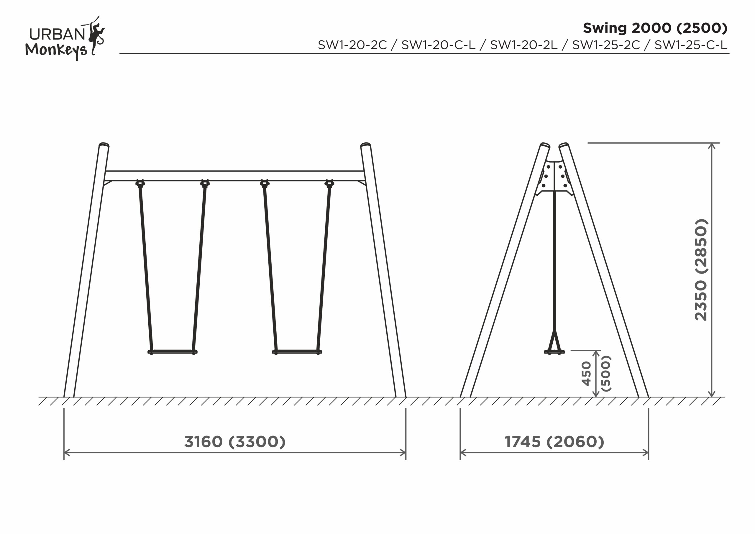 «Swing» dobbelt huskestativ med plankesete og rammesete,høyt