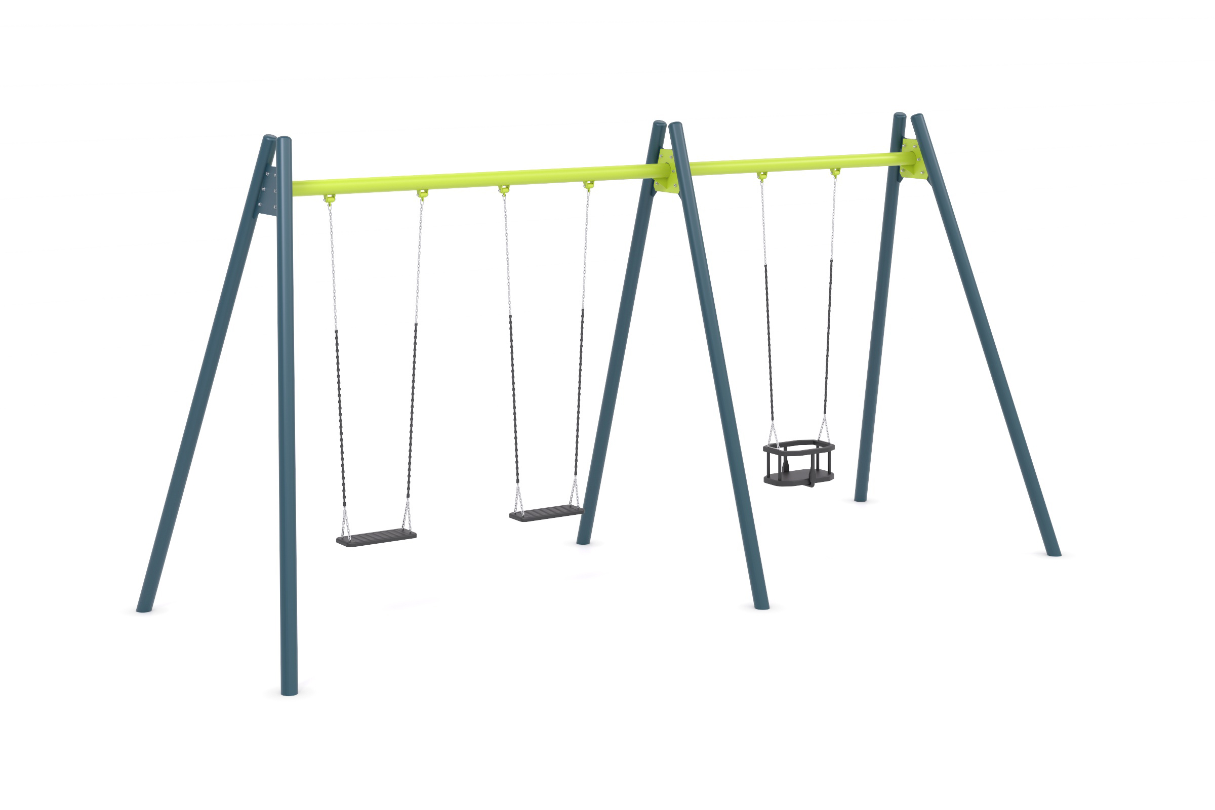 Kan leveres med bildekkseter eller inkluderende sete. Husken leveres med plastbelagt kjetting. Velg mellom 12 standard farger. Andre farger på forespørsel.