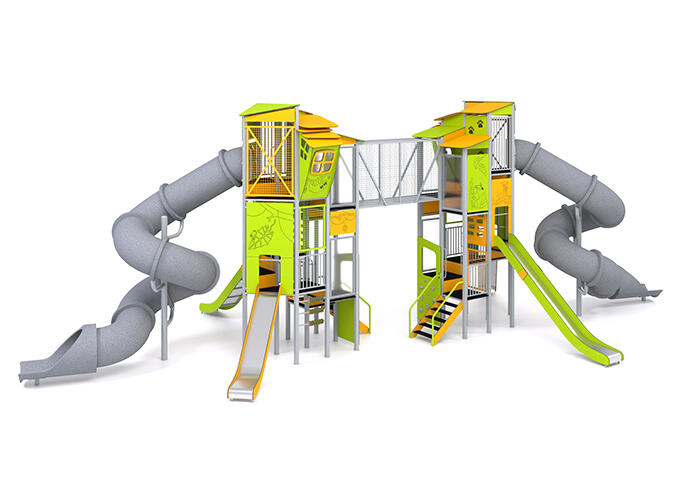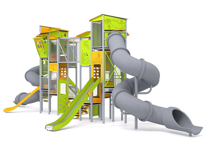 Tårnkomplekset inkluderer en tunnel, sklier, lekemoduler, klatrepaneler og koøye, som gir interessant fritid for barn i ulike aldersgrupper. Velg mellom 12 standard farger på stål og 8 standard farger på HDPE. Andre farger på forespørsel.