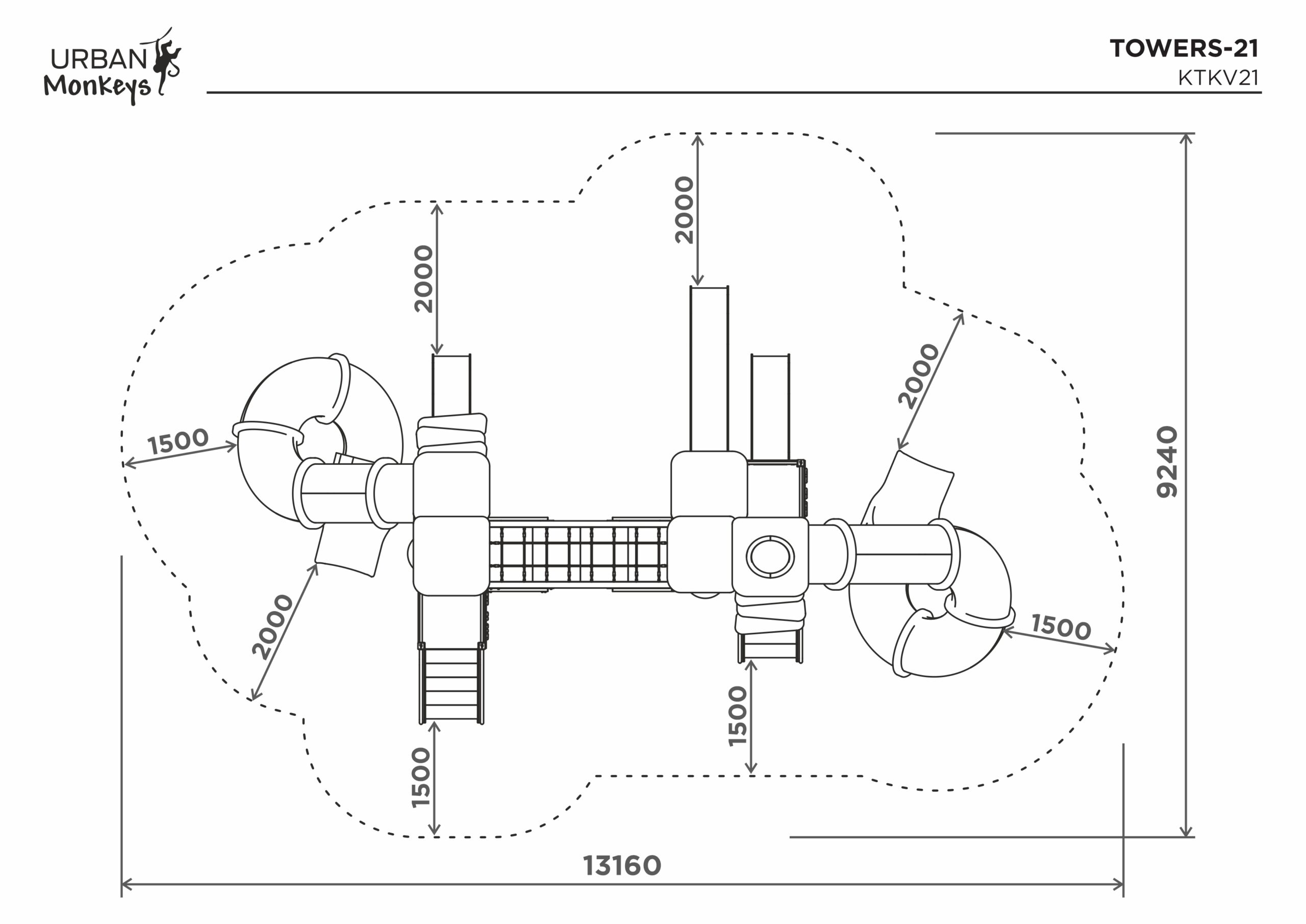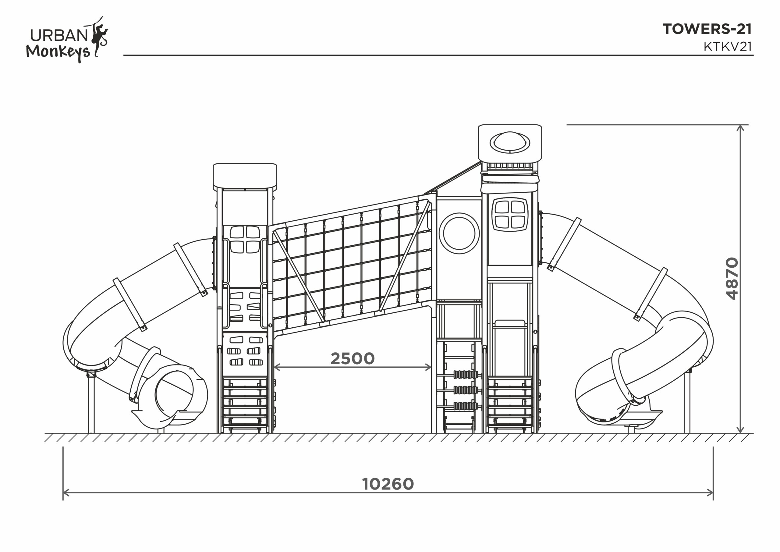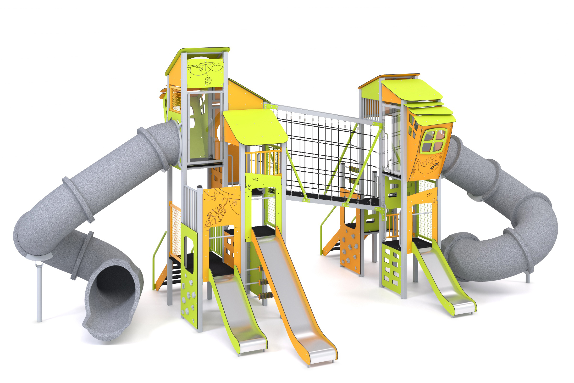 Tårnkomplekset inkluderer tunneler, sklier, lekemoduler, klatrepaneler og koøye, som gir interessant fritid for barn i ulike aldersgrupper.Velg mellom 12 standard farger på stål og 8 standard farger på HDPE. Andre farger på forespørsel.