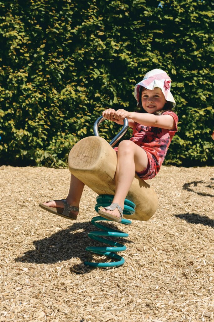 Vippe for barn i alderen 2 til 6 år. Vippen består av en fjær belagt med polyester som er montert på en galvanisert jordfesting. På toppen er et figurativt sitteelement formet som en marihøne. Marihønen er laget av Robinia eller eik og har røde og svarte detaljer. Fjæren er laget av 20 mm tykt fjærstål. Alle metalldeler er behandlet mot rust, og alle muttere og bolter er helt dekket med blomsterformede beskyttelseshetter. Fjæren er designet slik at du aldri kan bli klemt, ikke engang ved den tyngste belastningen. Fjærens elastisitet beregnes slik at bevegelsen kommer til høyre selv for de små.